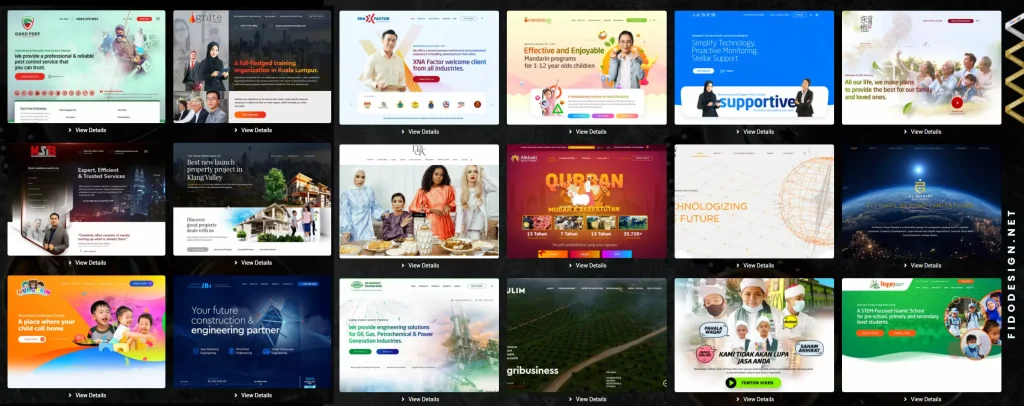 Anda nak website untuk bisnes katering atau wedding planner? Repair AirCond? Website Korperat? Waqaf, Qurban atau Aqiqah? Website Travel? Website Baju atau Fashion? Website Kosmetik? Pest Control? Website Security Service atau syarikat keselamatan? dan bermacam-macam lagi. Semua kami boleh uruskan!
